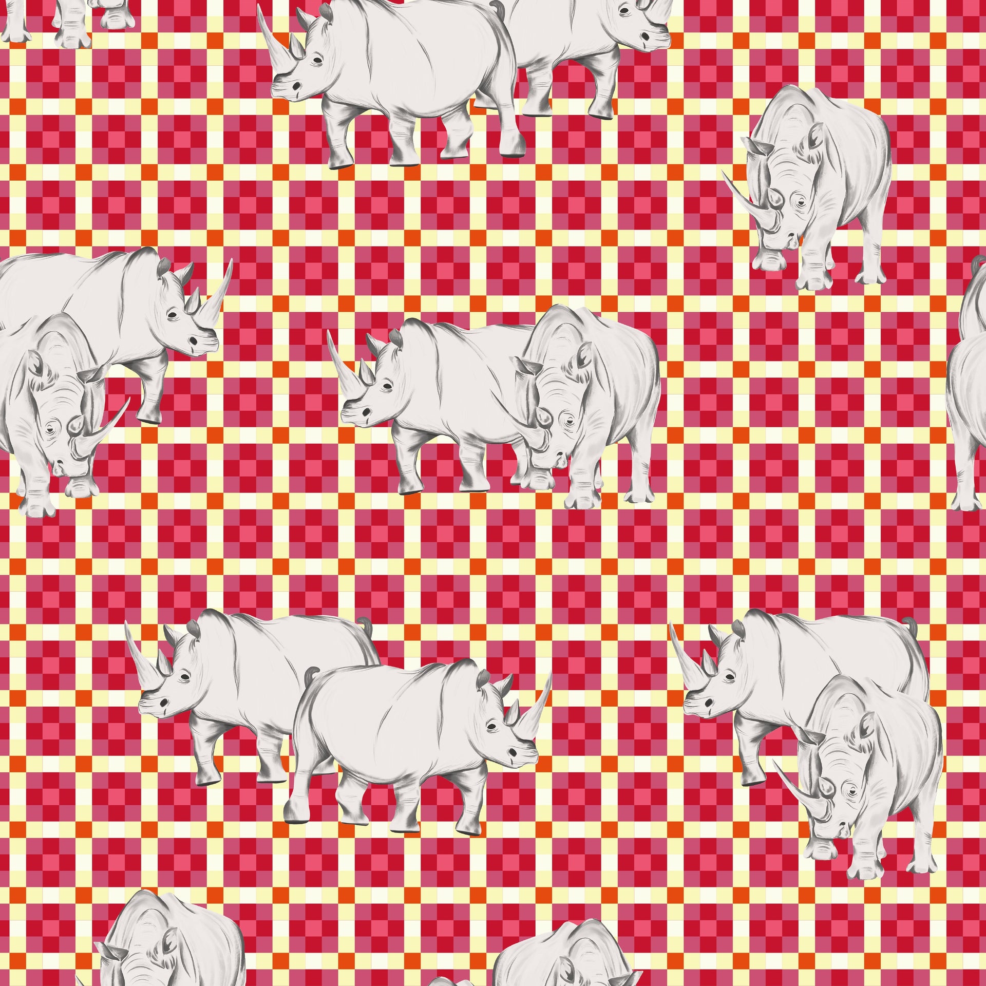 These gentle giants stand proud against a vibrant red-and-gold geometric grid, bringing strength and style into perfect harmony. Bold yet refined, this print is a tribute to resilience, ready to charge into any wardrobe with unapologetic flair.