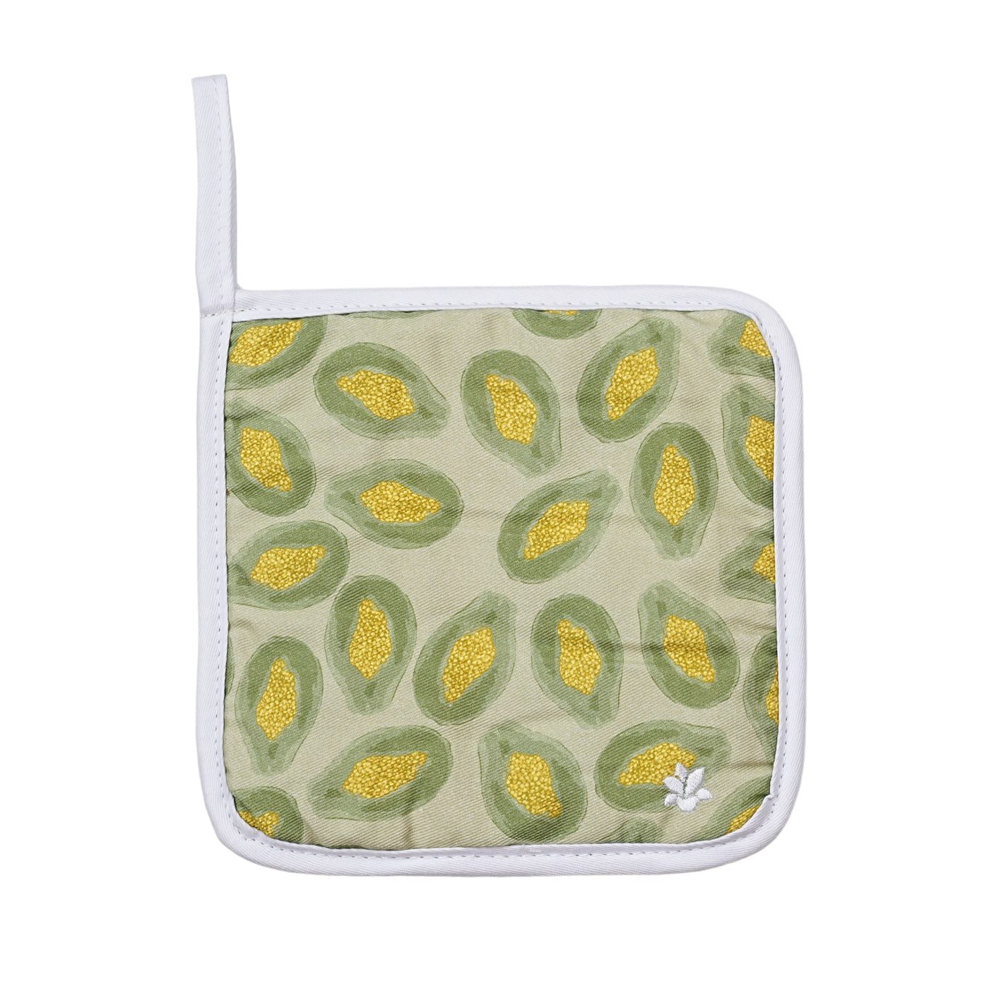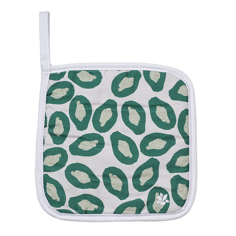 Brighten your kitchen with our Papaya Print Oven Mitt and Potholder, crafted from durable cotton and padded for comfort and protection. Inspired by the joyful abundance of the papaya fruit, this set blends playful design with everyday functionality, perfect for cooking, baking, and serving in style. Finished with a handy hanging loop, they’re as beautiful on display as they are in use.