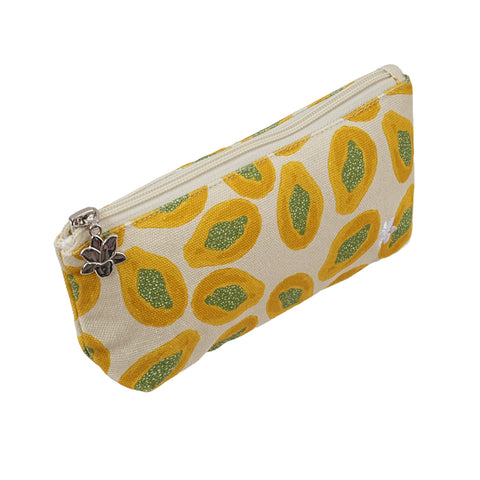 Brighten your workspace with our new pencil case, crafted in durable cotton canvas and featuring the brand’s signature papaya print. Finished with the elegant lily zipper pull, it’s both stylish and functional and perfect for storing pens, brushes, or small essentials.